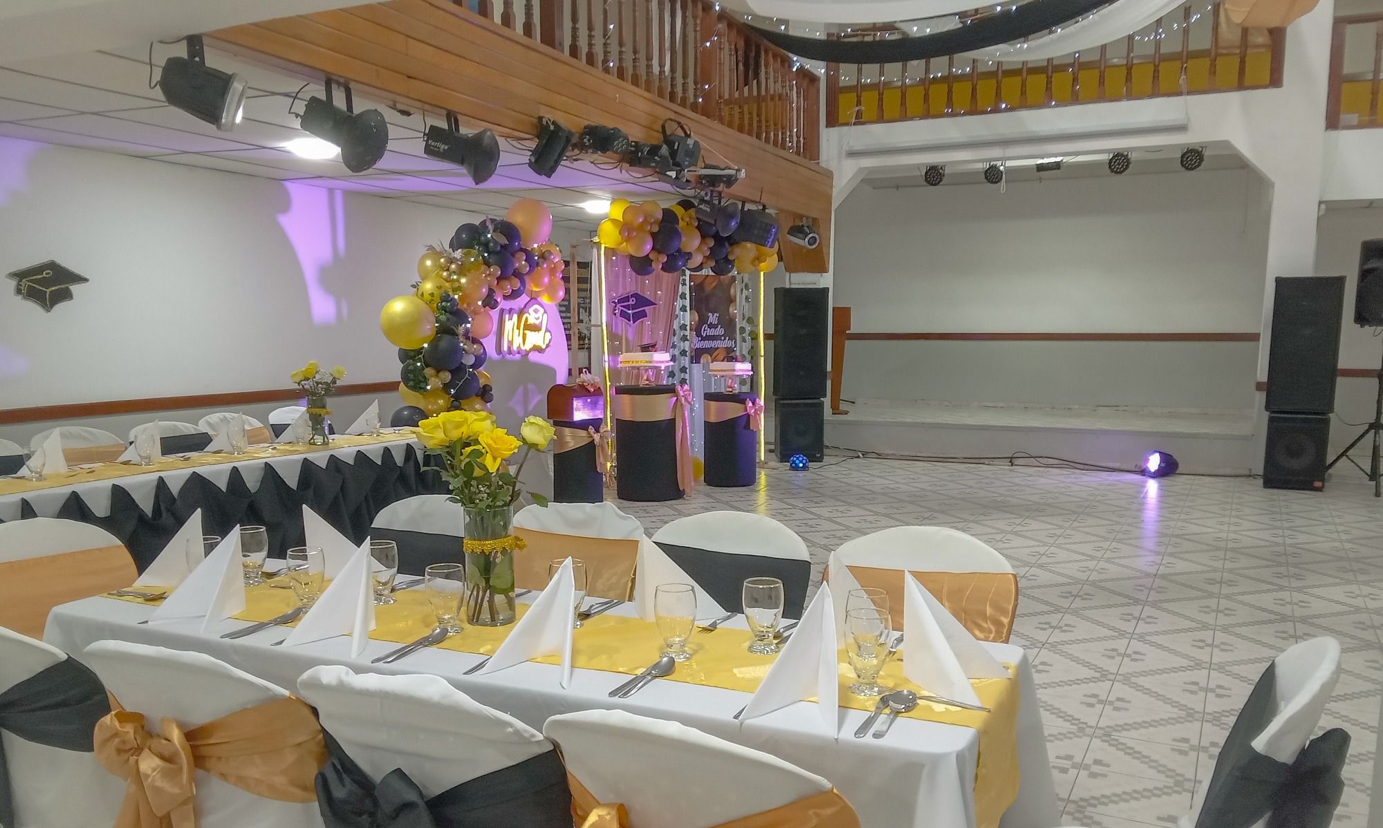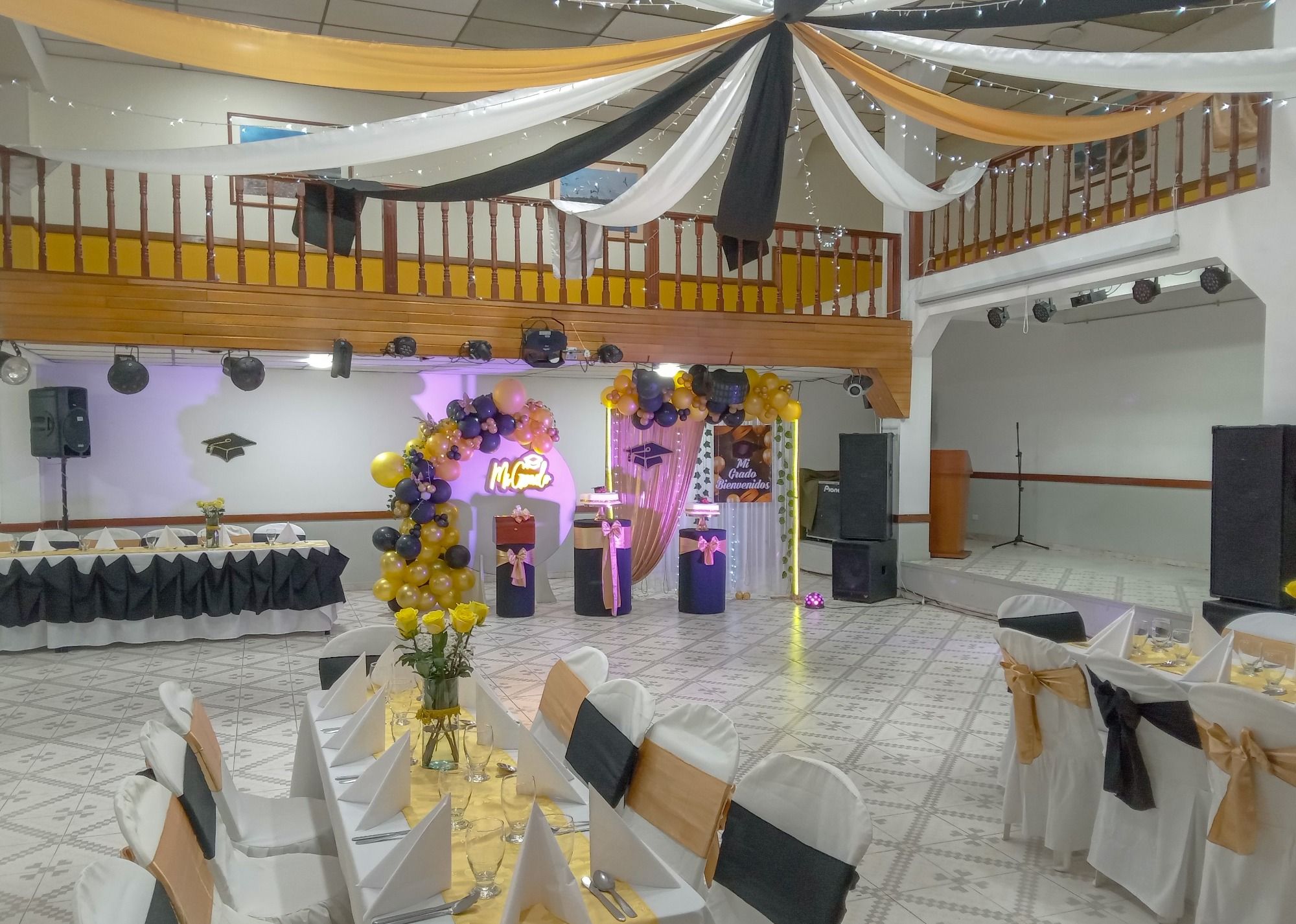 Un amplio espacio distribuido en dos niveles para una gran celebración a la que todos están invitados.